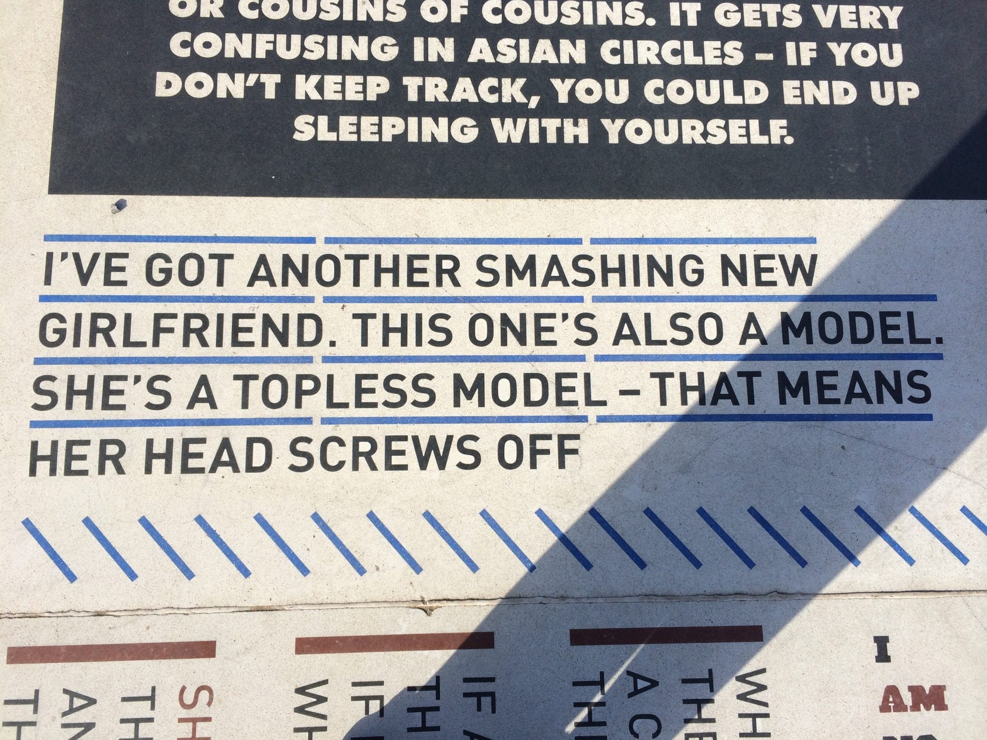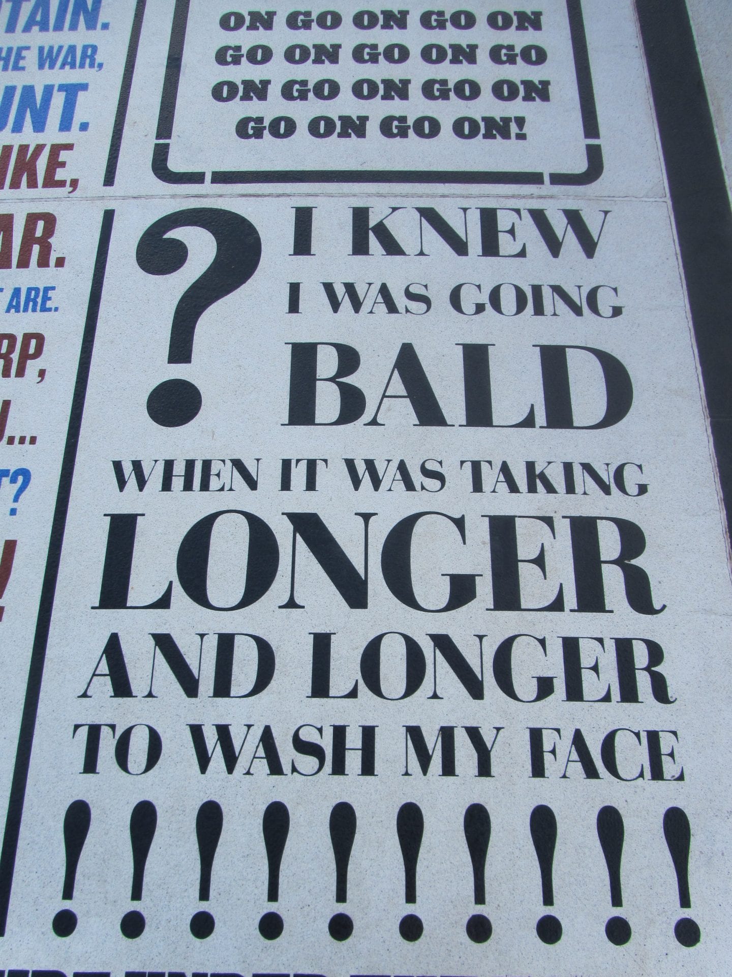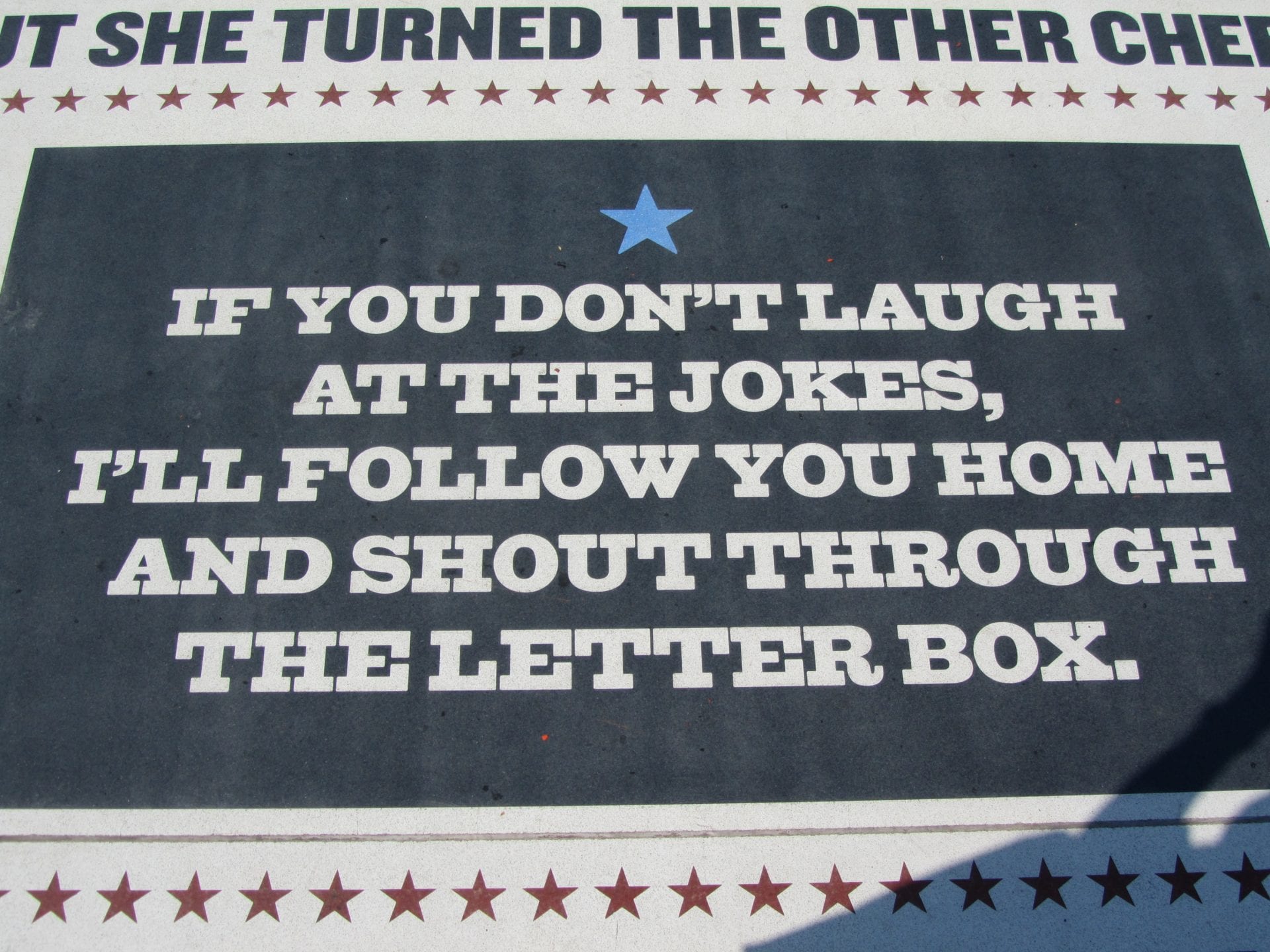 Each letter is made individually from 30mm solid granite. The art installation includes a whopping 160,000 individually cut letters. They’re set into concrete and spell out the catch phrases, jokes and sayings which cover the history of comedy.